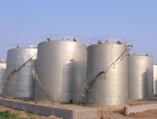 固定頂罐:固定頂儲罐的罐頂構造有多種型式,目前運用最普遍的為拱頂罐,這種罐頂為球缺形,球缺的半徑普通為罐直徑的0.8-1.2倍,拱頂自身是承重的構件,有較強的剛性,能接受一定的內(nèi)部壓力,拱頂儲罐的接受壓力普通為2kPa,由于遭到本身構造及經(jīng)濟性的限制,儲罐的容量不宜過大,容量大于1×10M3時,多采用網(wǎng)架式拱頂罐,目前拱頂罐的最大容量已達3×10M3。
